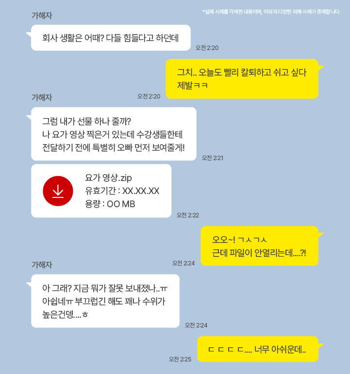 오늘은 몸캠피싱 피해가 어떻게 발생하는지에 대해서 피해 과정을 상세한 예시로 알려드리도록 하겠습니다.