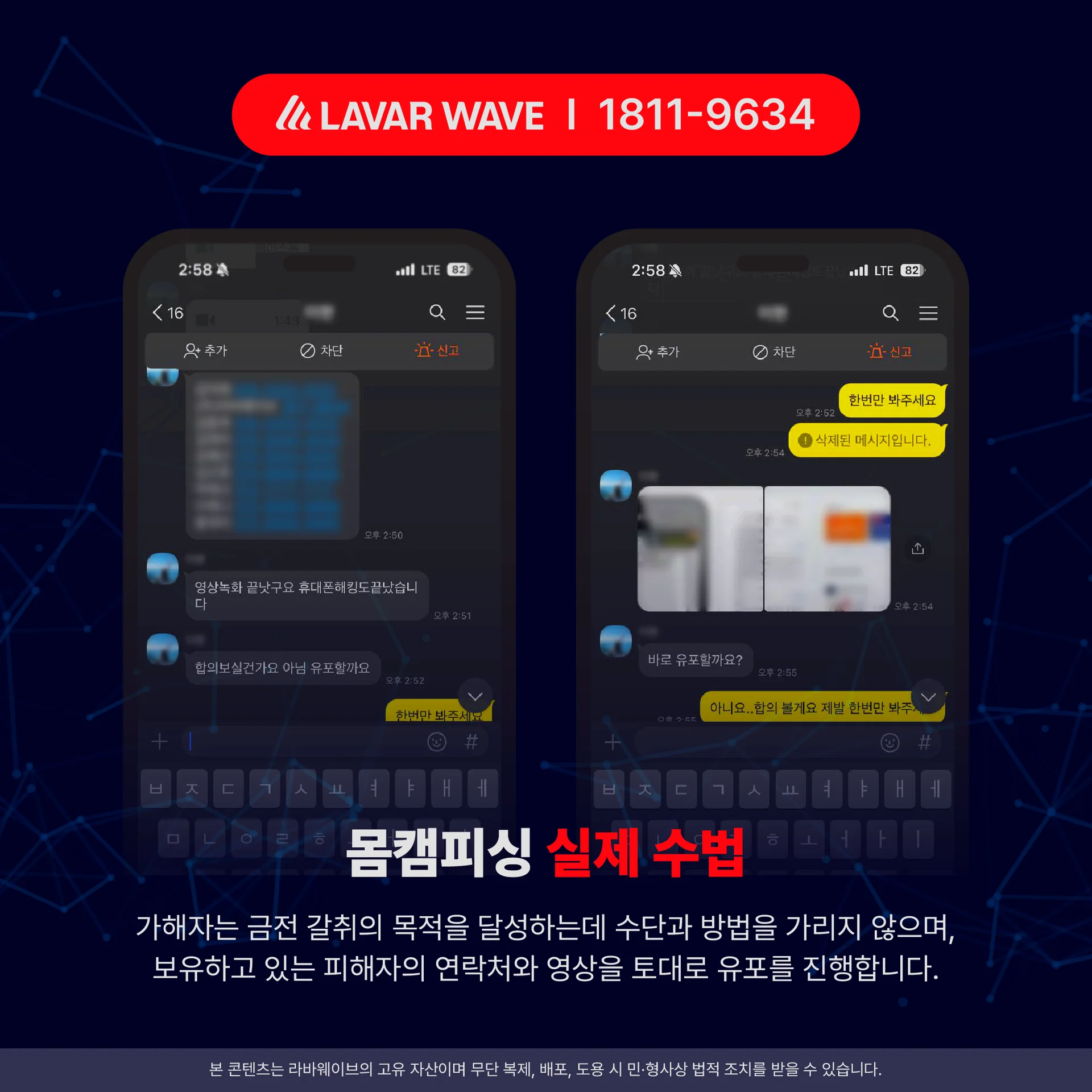 몸캠피싱: 영상통화나 사진을 확보 후 협박하며 금전 요구, 심리적 압박과 사회적 피해 동반