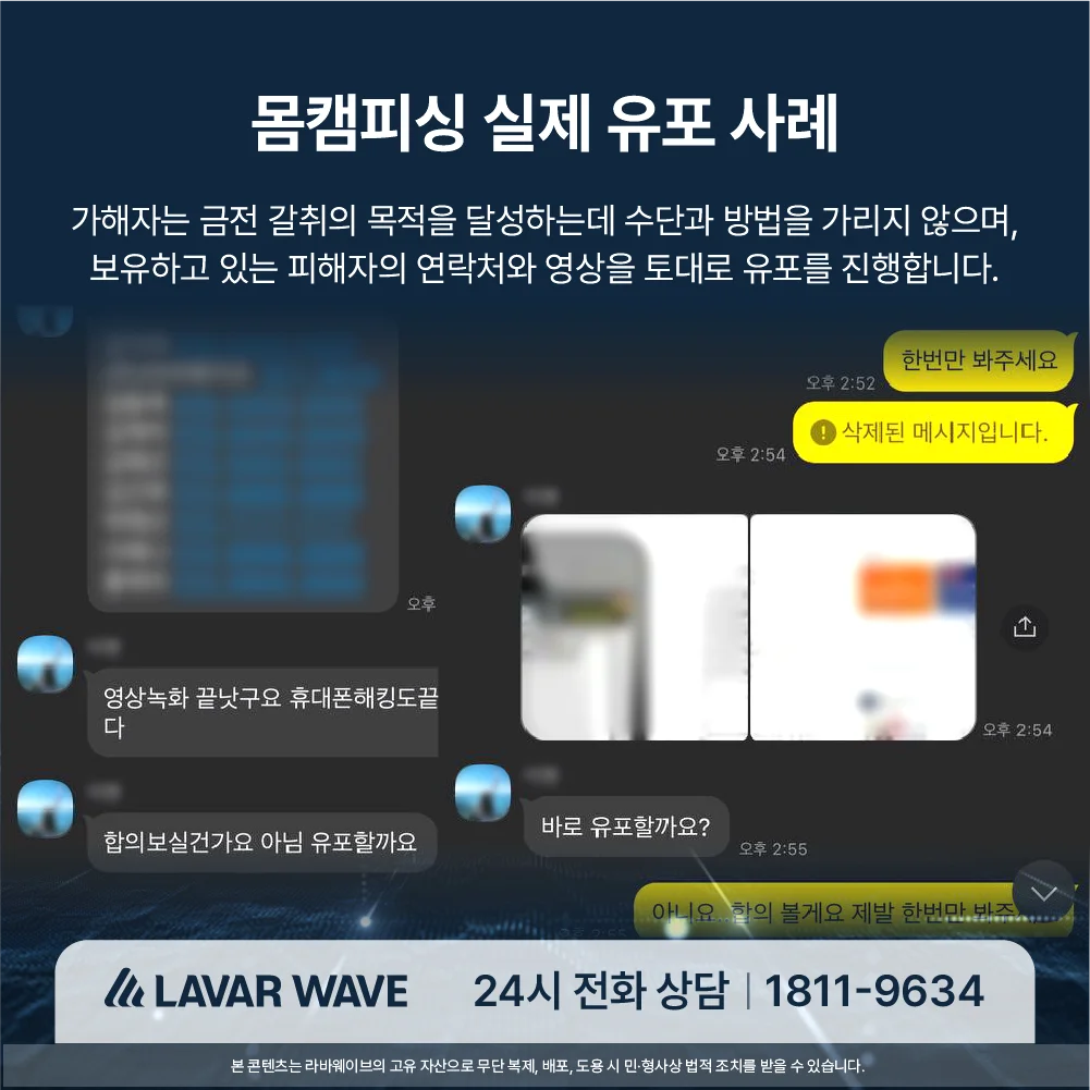 영상이 유포되거나 유포 위협이 있는 경우, 해당 플랫폼(유튜브, 인스타그램 등)에 삭제와 차단을 요청합니다.